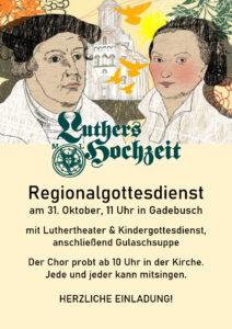 - 31, Oktober, 11:00 Uhr in der Stadtkirche zu Gadebusch: Gotttesdienst mit der Aufführung des Stückes „Luthers Hochzeit“